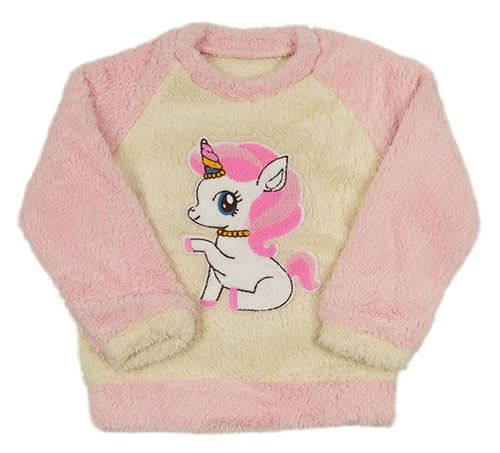 Smetanovo-světlerůžová huňatá mikina s jednorožcem