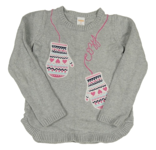 Šedý melírovaný svetr s obrázkem rukavic GYMBOREE.
