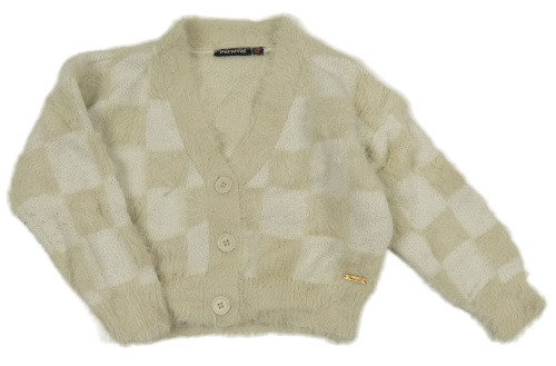 Béžovo-bílý kostkovaný chlupatý propínací crop svetr