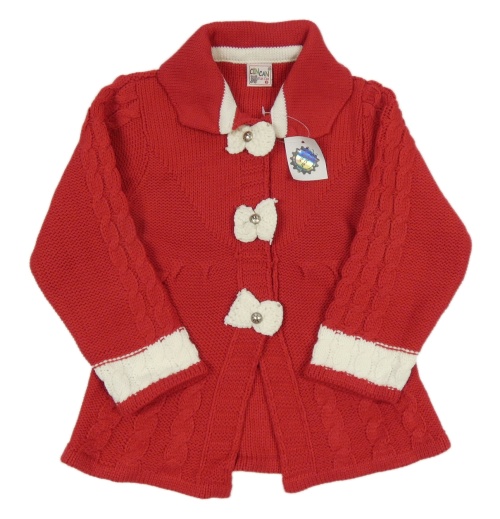 Nové - Červený propínací svetr s mašlemi a límečkem