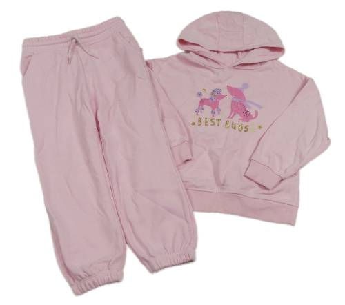 2Set - Světlerůžová mikina s pudlíky a zlatým nápisem a kapucí + tepláky PRIMARK