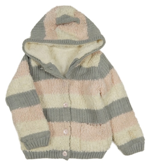 Šedo-růžovo-smetanový pruhovaný zateplený propínací svetr s třpytkami a kapucí Nutmeg