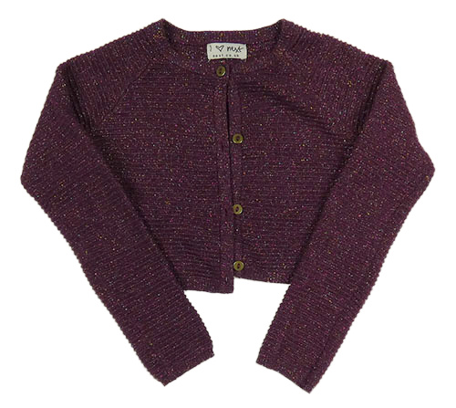 Tmavovínové žebrované úpletové propínací bolérko s barevnými třpytkami Next