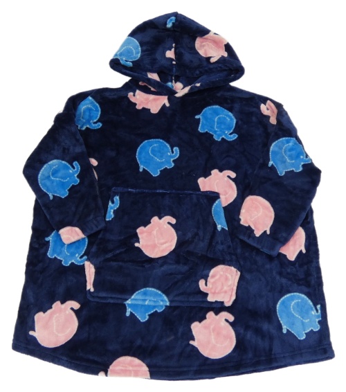 Tmavomodrá chlupatá oversize mikina se slony a kapucí
