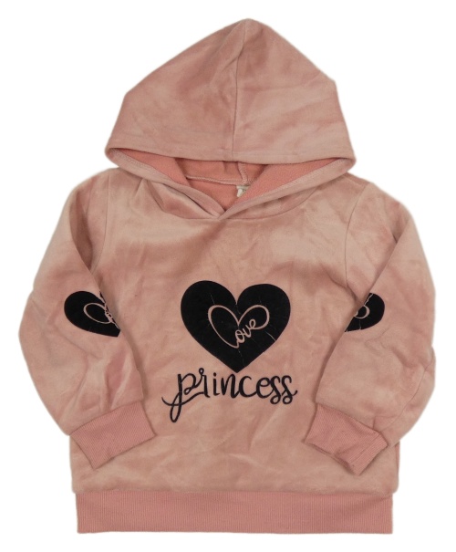 Růžová plyšová mikina se srdíčky a nápisy a kapucí