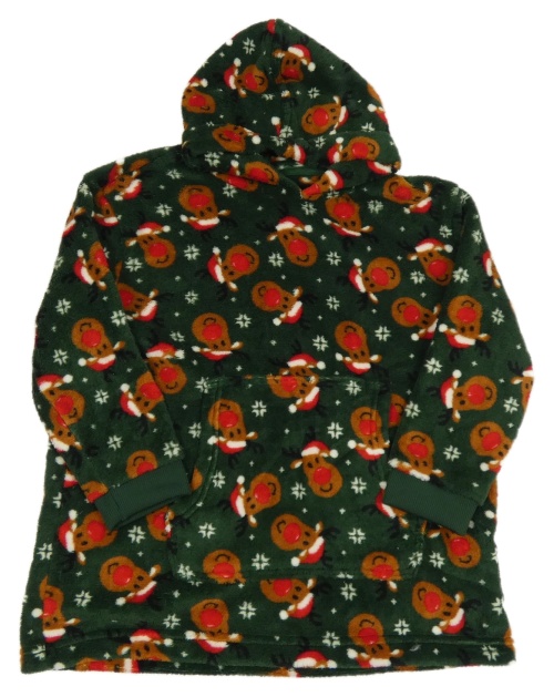 Tmavozelená chlupatá oversized mikina se soby a kapucí Distra