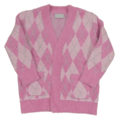 Růžovo-stříbrný károvaný svetrový cardigán Matalan