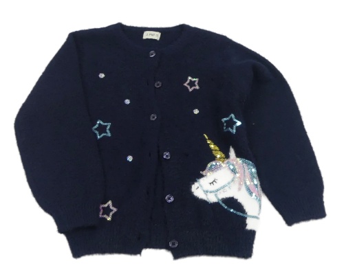 Tmavomodrý propínací svetr s jednorožcem a flitry F&F