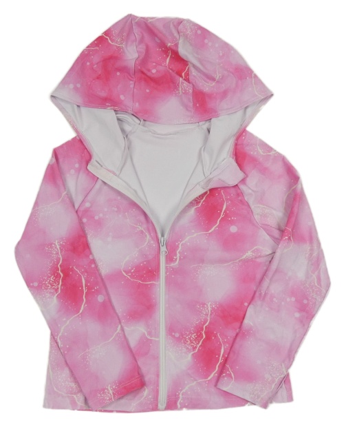 Růžovo-bílá batikovaná elastická propínací sportovní mikina s kapucí SHEIN