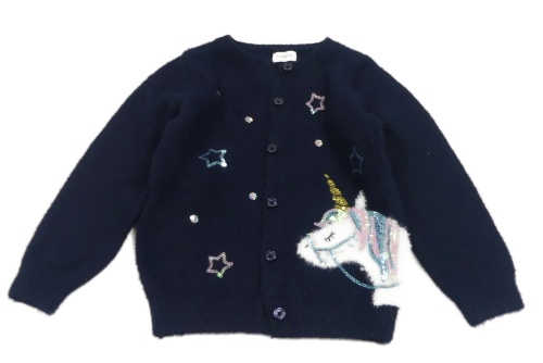 Tmavomodrý propínací svetr s jednorožcem s flitry F&F