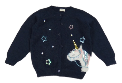 Tmavomodrý propínací svetr s jednorožcem s flitry F&F