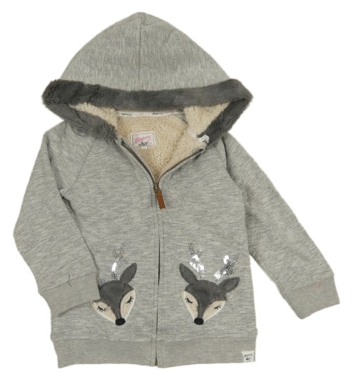 Světlešedá zateplená propínací mikina s jeleny a kapucí mantaray