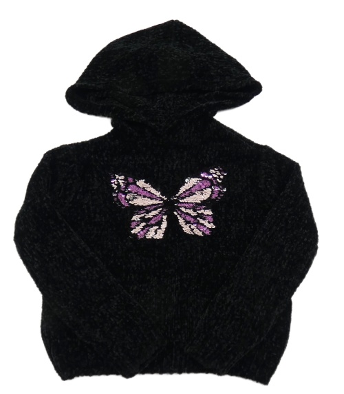 Černý žinylkový svetr s překlápěcími flitry a kapucí Dopodopo