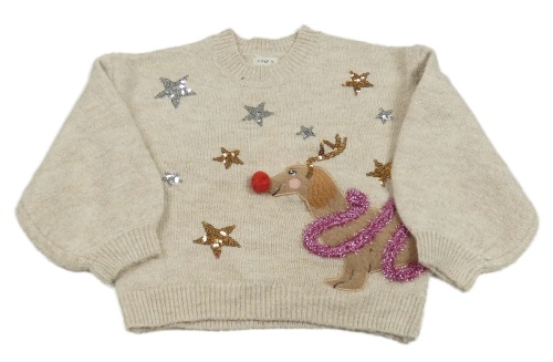 Béžový svetr s jezevčíkem a hvězdami F&F