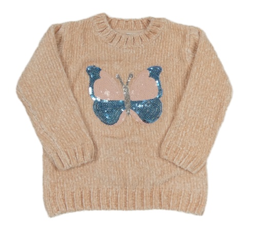 Světlerůžový žinylkový svetr s motýlem