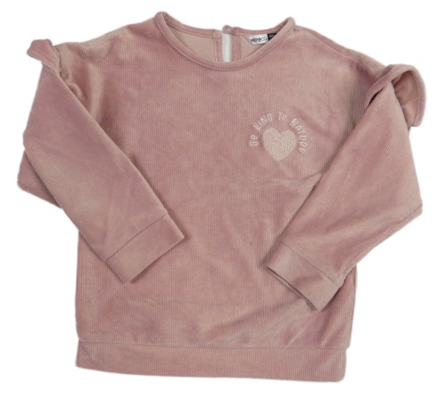Starorůžová žebrovaná sametová mikina se srdcem a volánky Pep&Co