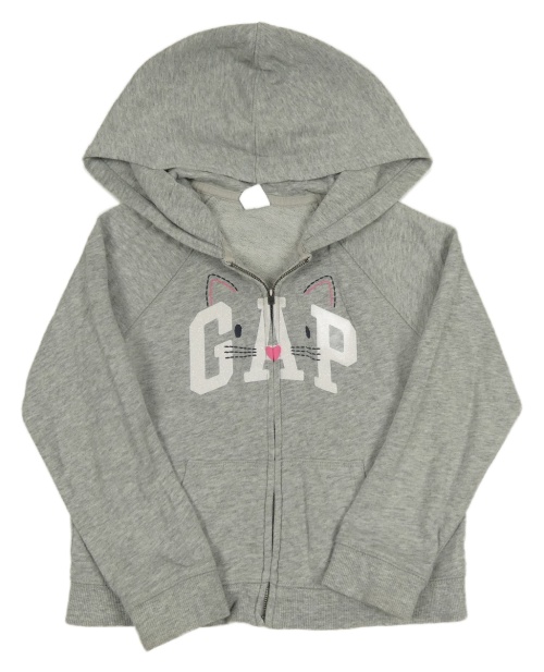 Šedá melírovaná propínací mikina s kočičkou a logem a kapucí GAP