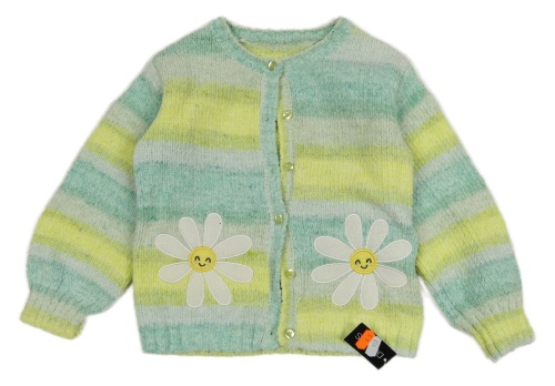 Nové - zelený pruhovaný propínací žinylkový svetr s květinami Dunnes Stores