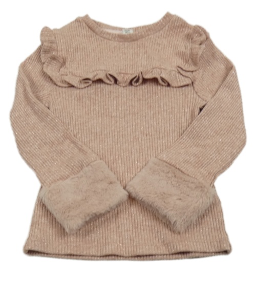 Růžový třpytivý žebrovaný svetr s kožíškem River Island