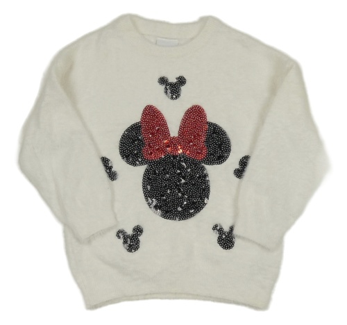 Smetanový chlupatý svetr s Minnie a Mickey z flitrů Disney
