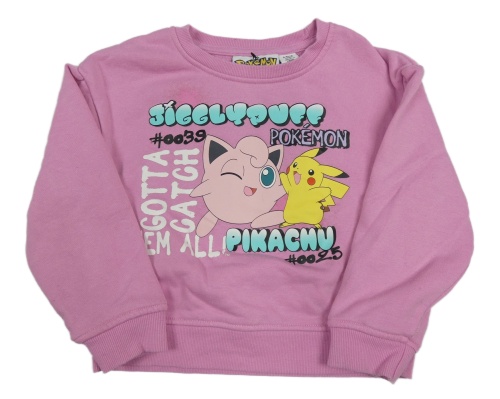 Růžová mikina s pokémony a nápisy