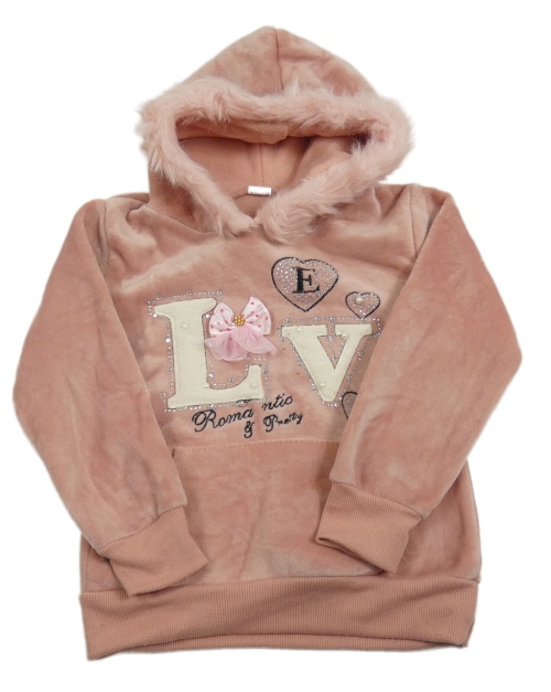Růžová plyšová mikina s nápisem a kapucí s kožešinou