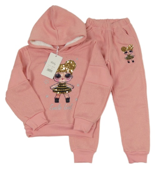 Nové - 2set - Růžová pletená mikina s kapucí + tepláky - LOL