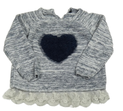 Bílo-černý melírovaný svetr se srdcem a krajkou George