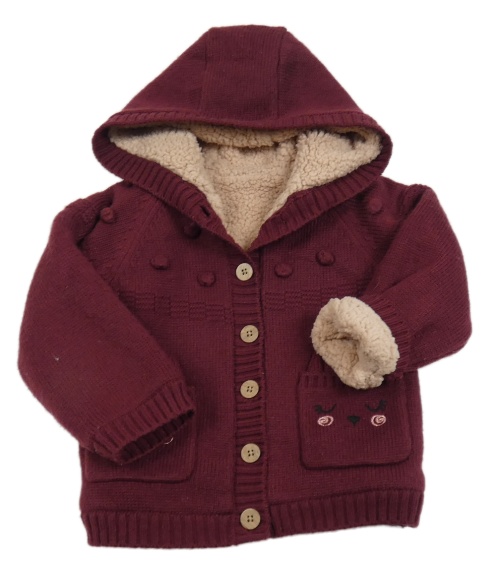 Vínový propínací zateplený svetr se zajíčky a kapucí Nutmeg