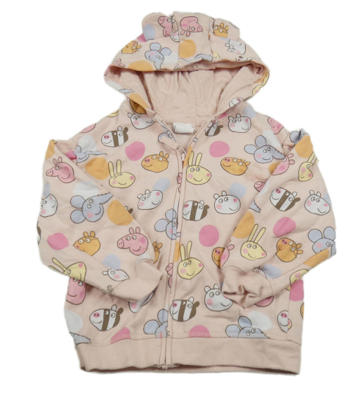 Světlerůžovo-barevná puntíkatá propínací mikina s Peppa Pig s kamarády a kapucí s oušky Next
