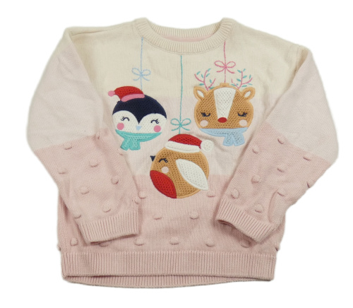 Smetanovo-světlerůžový vánoční svetr se zvířátky/ozdobičkami a 3D puntíky Mothercare