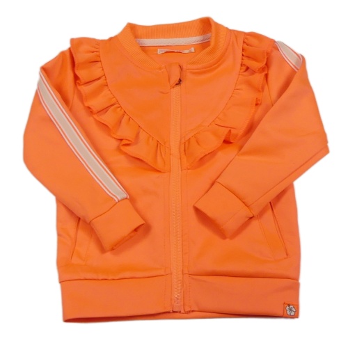 Neonově oranžová propínací sportovní mikina s volánky a pruhy