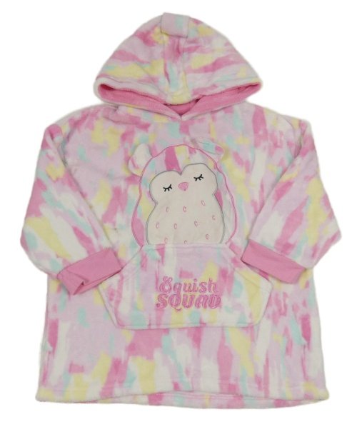 Světlerůžovo-barevná chlupatá ovesize mikina se sovou a kapucí