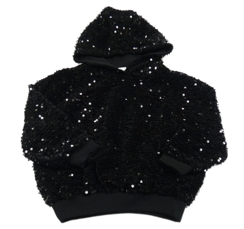 Černá sametová flitrová podšitá oversize mikina s kapucí Next
