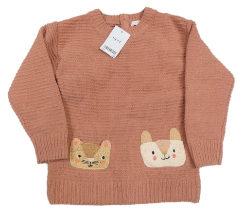 Nové - skořicový žebrovaný svetr se zvířátky/kapsami Next