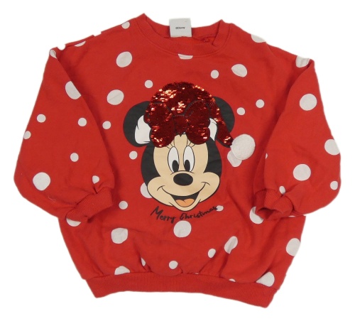 Červeno-bílá puntíkatá oversize mikina s Minnie s překlápěcími flitry Next