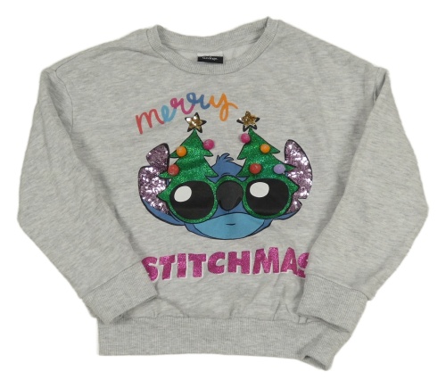 Šedá melírovaná oversize mikina se Stitchem s flitry a vánočním motivem George