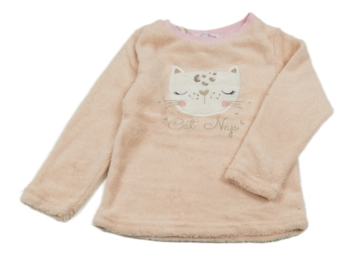 Světlerůžová chlupatá pyžamová mikina s kočkou