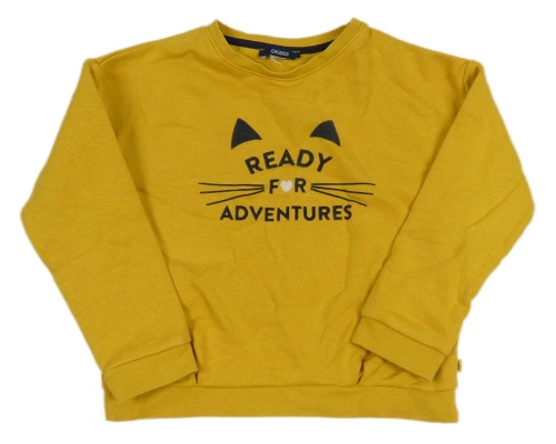Okrová mikina s kočičkou a nápisy OKaïdi