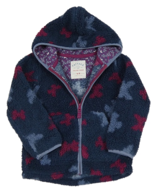 Tmavomodrá huňatá propínací mikina s motýly a kapucí Fat Face