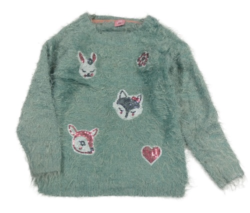 Světlemodrý chlupatý svetr se zvířátky z flitrů Kiki&Koko