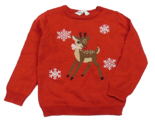 Červený svetr se srnkou a vločkami Primark