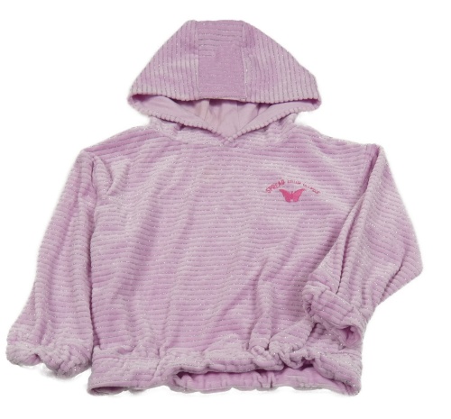 Lila-stříbrná žebrovaná sametová třpytivá mikina s motýlkem a kapucí Primark