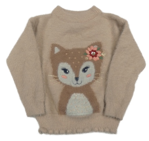Pudrovo-světlešedý melírovaný chlupatý svetr se zvířátkem s flitry C&A