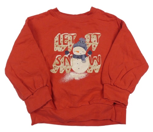 Červená oversize mikina se sněhuláčkem a nápisy Next