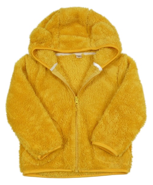 Žlutá chlupatá propínací mikina s kapucí