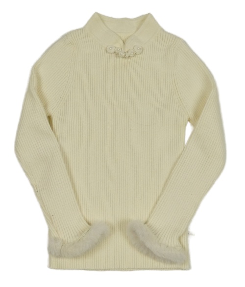 Smetanový žebrovaný svetr s perličkami