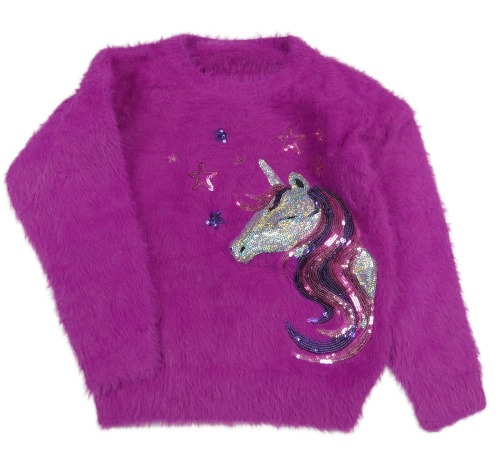Tmavorůžový chlupatý svetr s jednorožcem z flitrů St. Bernard