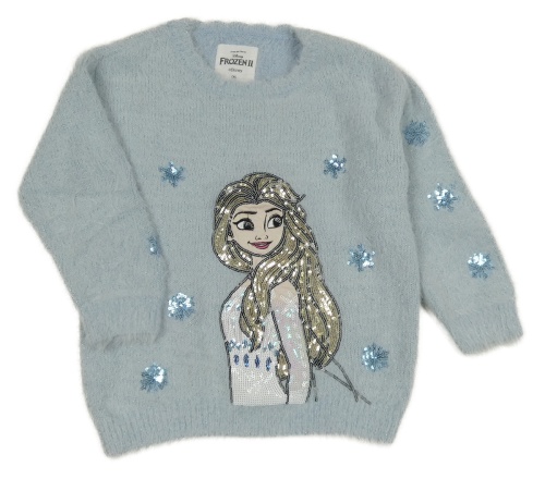 Světlemodrý chlupatý svetr s Elsou a vločkami z flitrů Disney