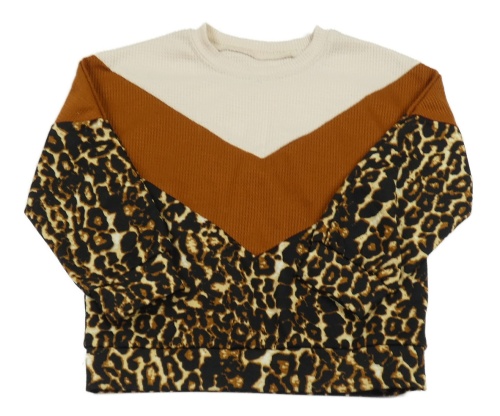 Smetanovo-hnědo-černá žebrovaná mikina se vzorem SHEIN